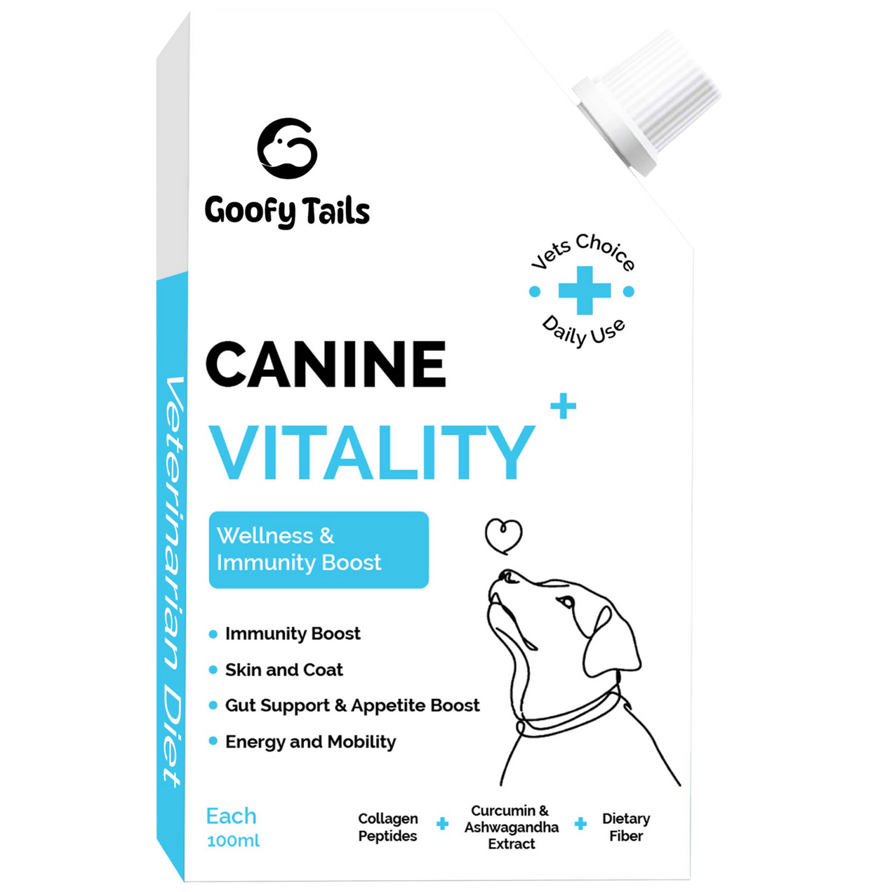 Support your dog’s health with Goofy Tails Canine Vitality+ — a nutritious daily supplement topper for dogs! Designed to energise and protect, this exclusive wellness formula is packed with natural ingredients that promote immunity, joint strength, digestion, and healthy skin. Whether your dog is highly active or just needs a little extra support, Canine Vitality+ is a convenient and tasty way to enhance every meal. Just pour it over your pup’s meals and let them enjoy a delicious boost of vitality. Crafted for everyday wellness, this supplement is a smart choice for dogs of all ages.