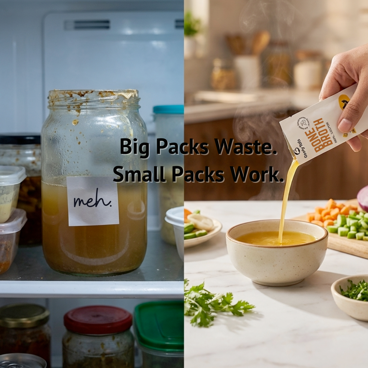 If the bone broth pack is swollen then you may take a picture of it and share it with our customer support team for a fresh replacement.
