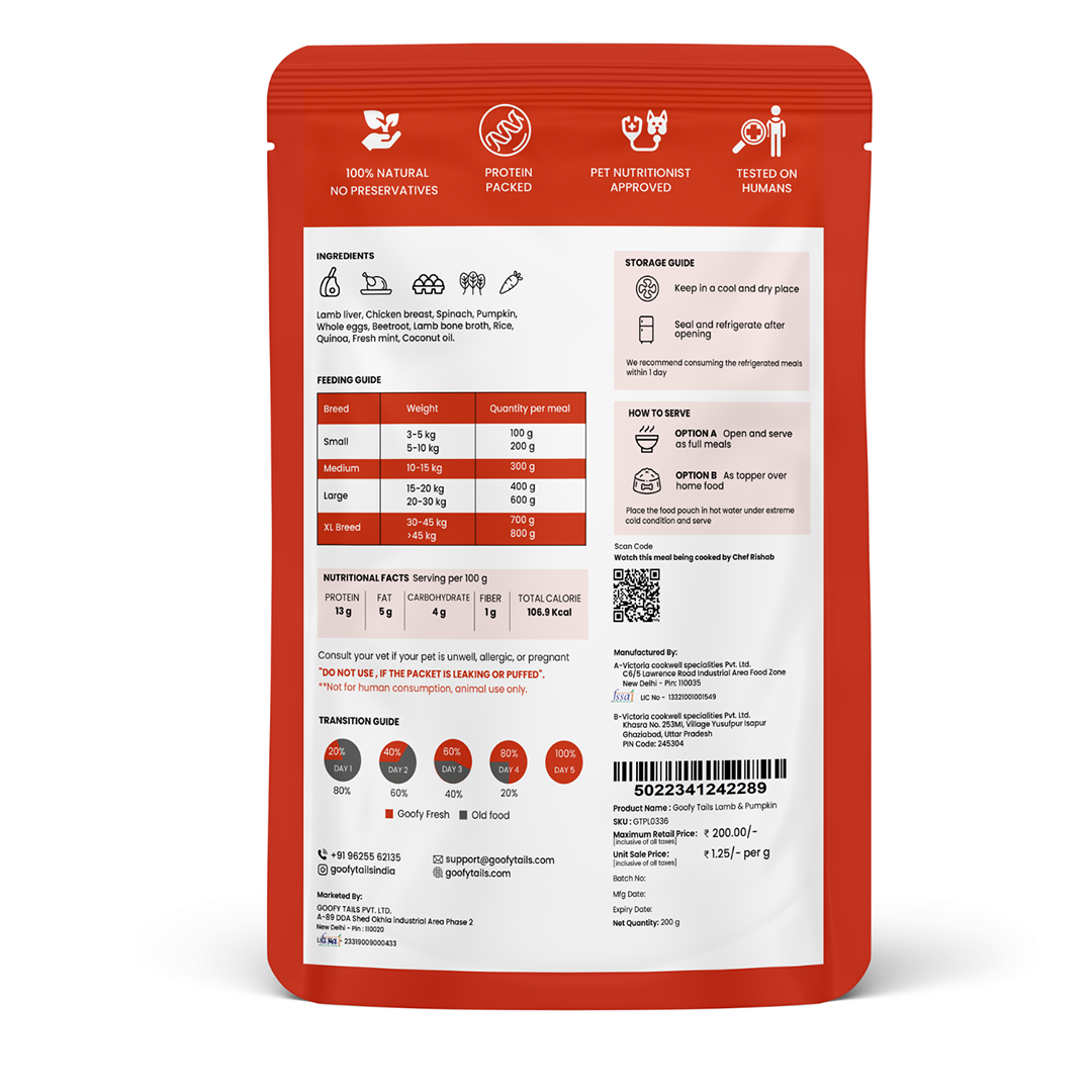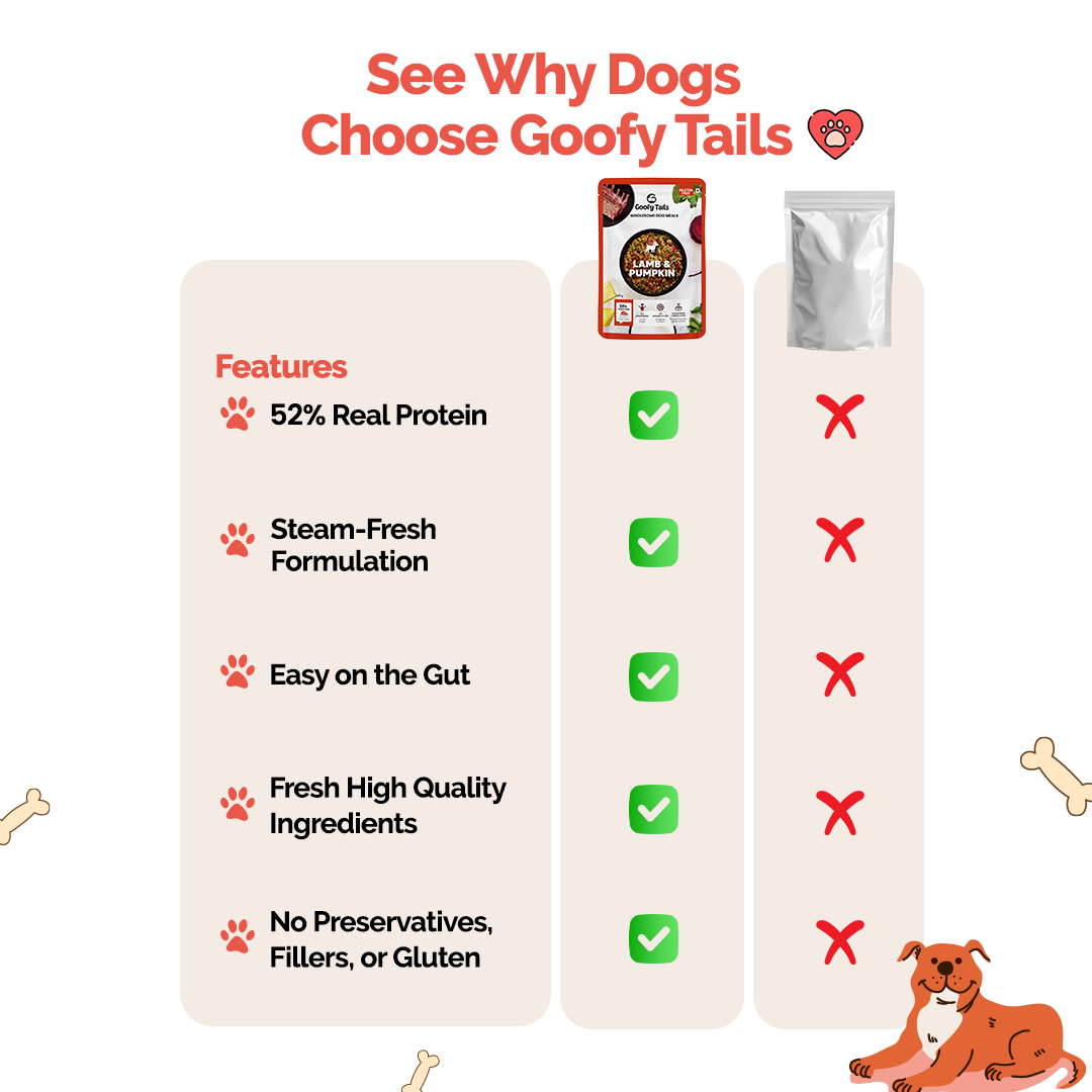 “My dog absolutely loved Goofy Tails Lamb & Pumpkin! Clean bowl in minutes 🐶❤️ Nutritious, fresh, and clearly tasty. Will buy again!”