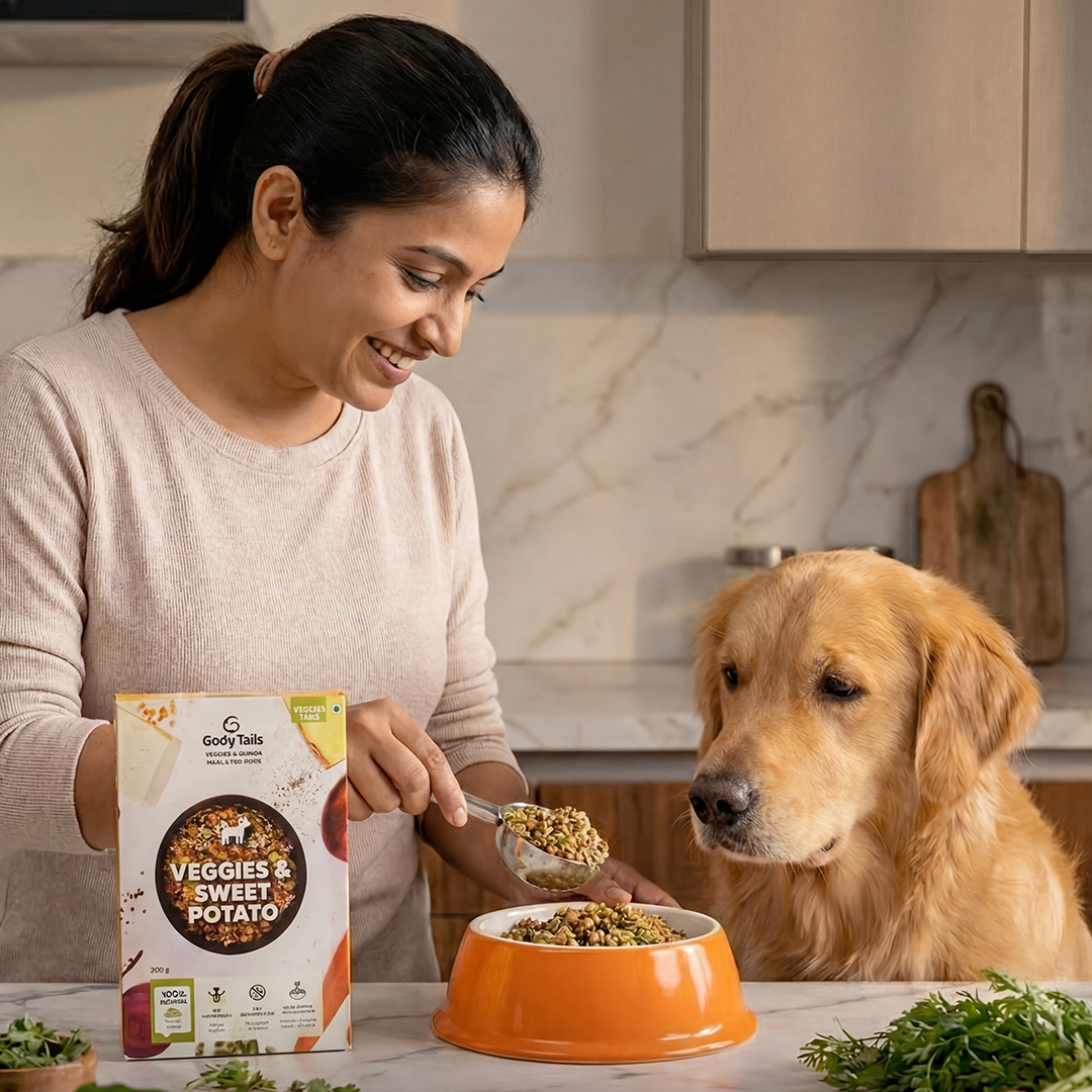 “A treat for my dog! Made with real, human-grade ingredients like Paneer, Lentils, and Pumpkin, it's a nutrient-packed delight. My pup's coat is shinier than ever thanks to the flaxseeds, and the convenience of ready-to-eat makes mealtime a breeze!”