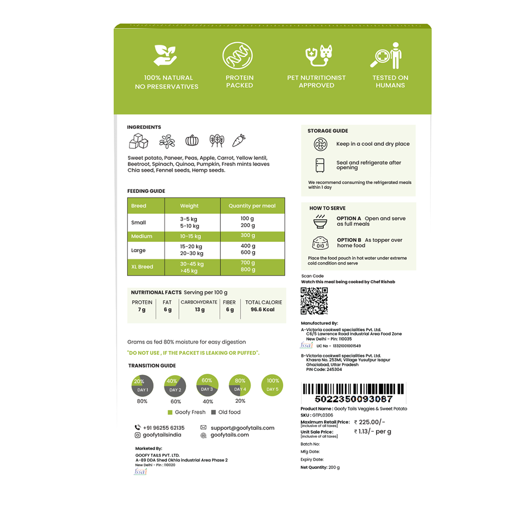 “My pet simply devours the Goofy Tails Veggies and Sweet Potato. It's a fantastic choice for pet owners who prioritize health and wellness. Truly a five-star product!”