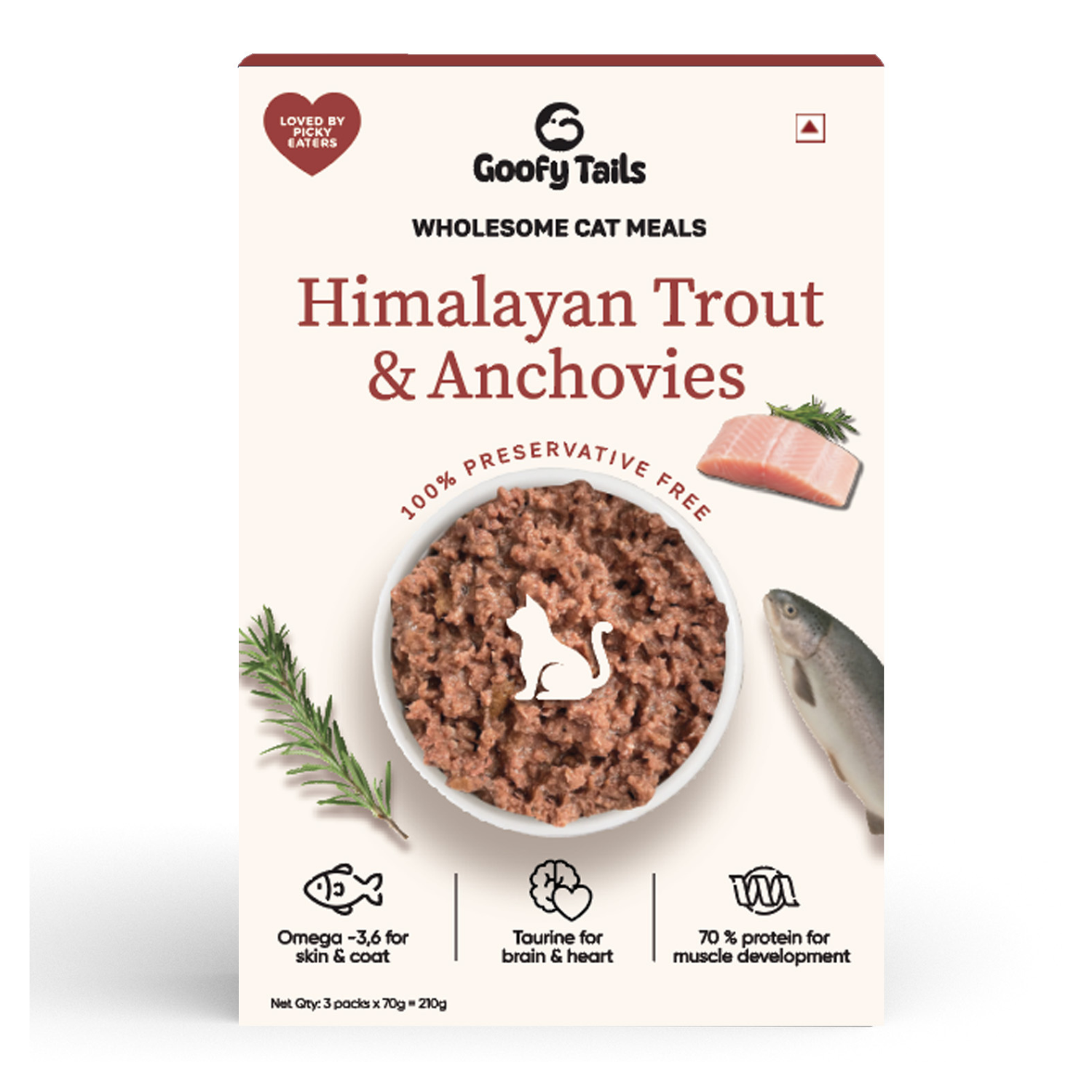 Himalayan Trout, Water, Anchovies, Goofy Tails Vitamin Premix, Calcium Carbonate, Inulin, Sunflower Oil, Taurine, Guar Gum, Locust Bean Gum, Agar Agar, Choline Chloride