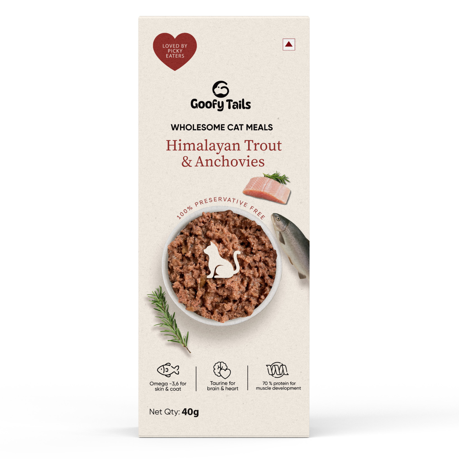 Himalayan Trout, Water, Anchovies, Goofy Tails Vitamin Premix, Calcium Carbonate, Inulin, Sunflower Oil, Taurine, Guar Gum, Locust Bean Gum, Agar Agar, Choline Chloride