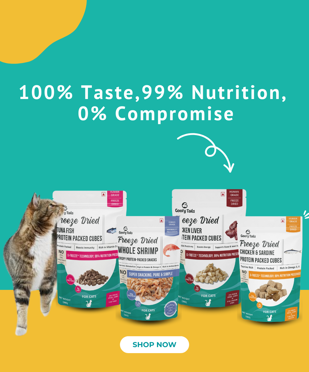 Goofy Tails is a pan-India Pet Food and Nutrition company that provides nutritious, wholesome and holistic meals and supplements for cats and dogs free from any additives, nasties or preservatives. These meals are formulated by Indian and International nutritionists to give your pets the best experience.